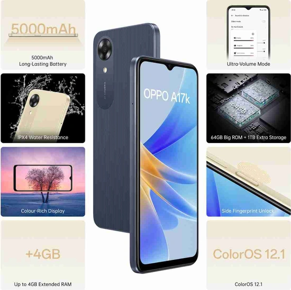 Oppo A17k (Blue, 3GB RAM, 64GB Storage)